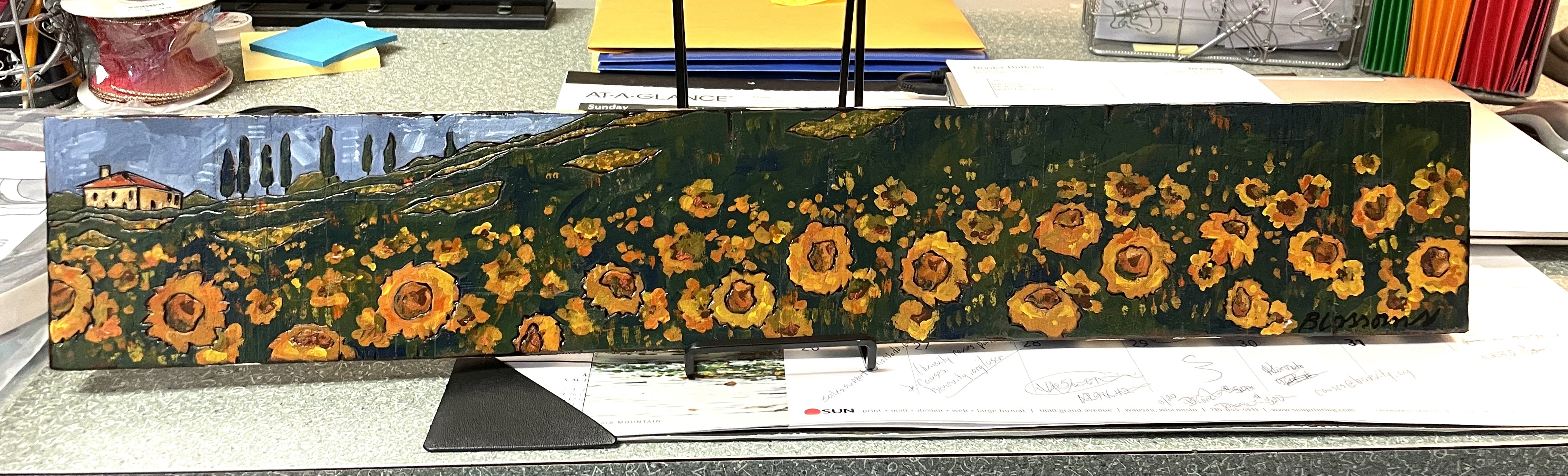 Acrylic Sunflowers on Wood at LOLA