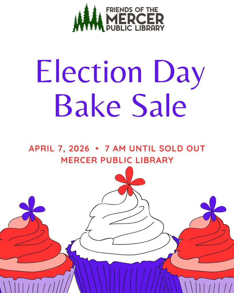 The polls will be open from 7:00 a.m. to 8:00 p.m. at the Mercer Community Center, right next to the library—so be sure to vote and then stop by the bake sale!