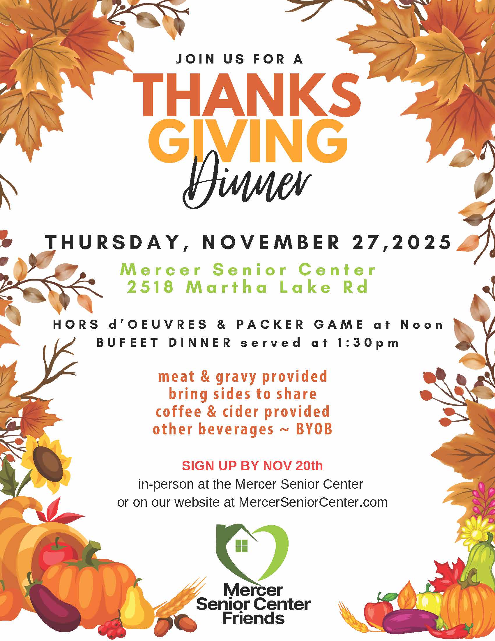 The Mercer Senior Center Friends invite all adults to enjoy free coffee and conversation at the Mercer Senior Center’s Morning Perk open Tuesday through Thursday from 8 to 11 a.m. Complimentary coffee,…