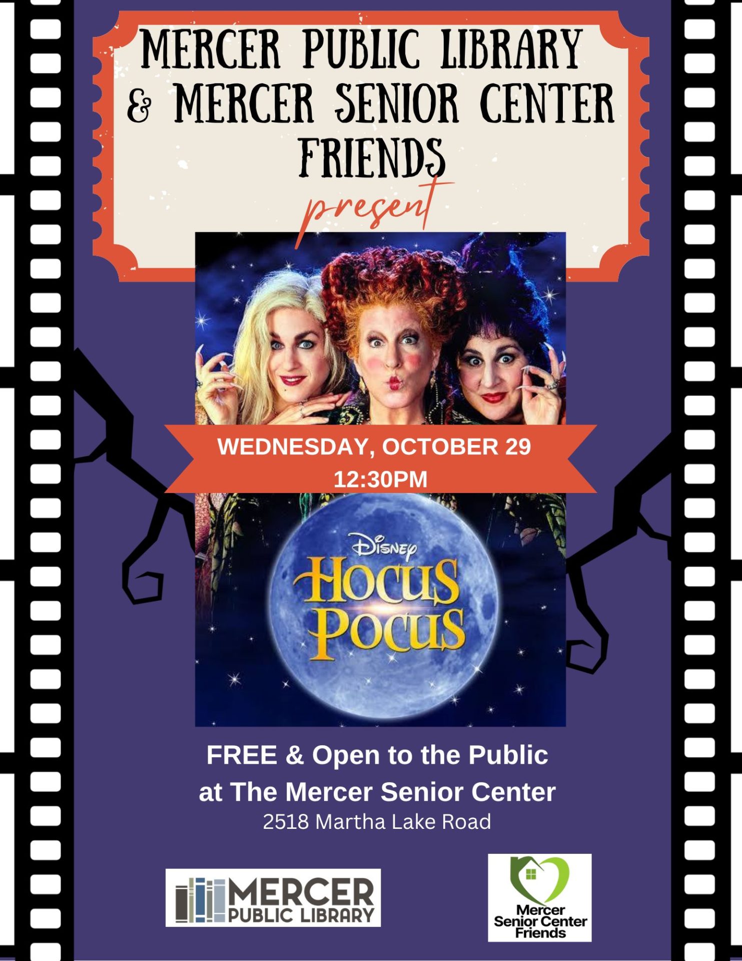 Hocus Pocus Movie at the Senior Center Oct 29 12:30 pm - 2:30 pm Hocus Pocus Movie at the Senior Center